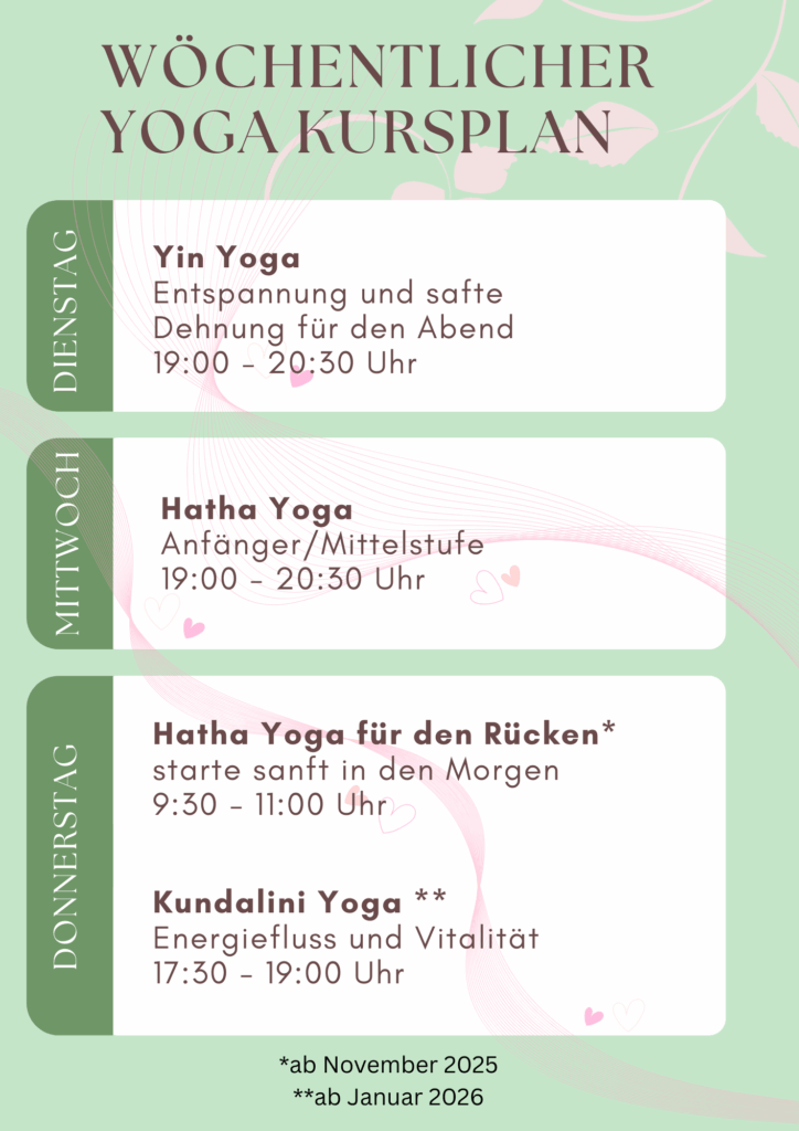 Ob du Stress abbauen, deine Konzentration verbessern oder deine körperliche Fitness steigern möchtest – Yoga unterstützt dich auf deinem Weg zu mehr Ausgeglichenheit und Wohlbefinden. In meinem Studio biete ich Kurse für alle Level an, um dich auf deiner persönlichen Reise zu mehr Balance und Energie zu begleiten.